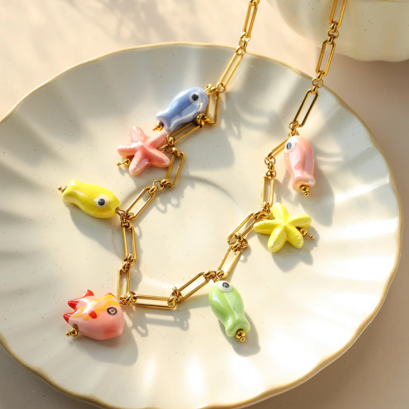 Ceramic Starfish Fish Necklace