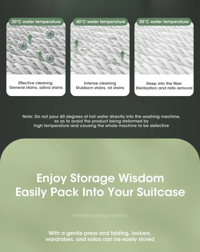 Designed with portability in mind, the foldable structure makes it easy to store and carry—perfect for small spaces like balconies or bathrooms. The gentle 360° washing cycle ensures delicate garments such as socks, underwear, and baby clothes are cleaned thoroughly without damage. Whether you're traveling or living in a compact space, this unit provides reliable convenience and ease of use.