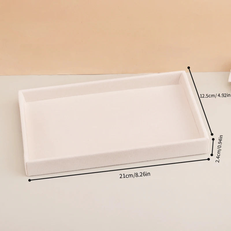 La doublure en velours doux protège les objets délicats des rayures et des dommages, tandis que sa structure compacte et empilable vous permet d'optimiser votre espace en organisant soigneusement plusieurs plateaux dans un tiroir ou sur une commode. Sa teinte beige minimaliste s'intègre parfaitement à une grande variété d'intérieurs, ce qui en fait un ajout élégant et fonctionnel à votre coiffeuse, votre dressing ou votre comptoir à bijoux.