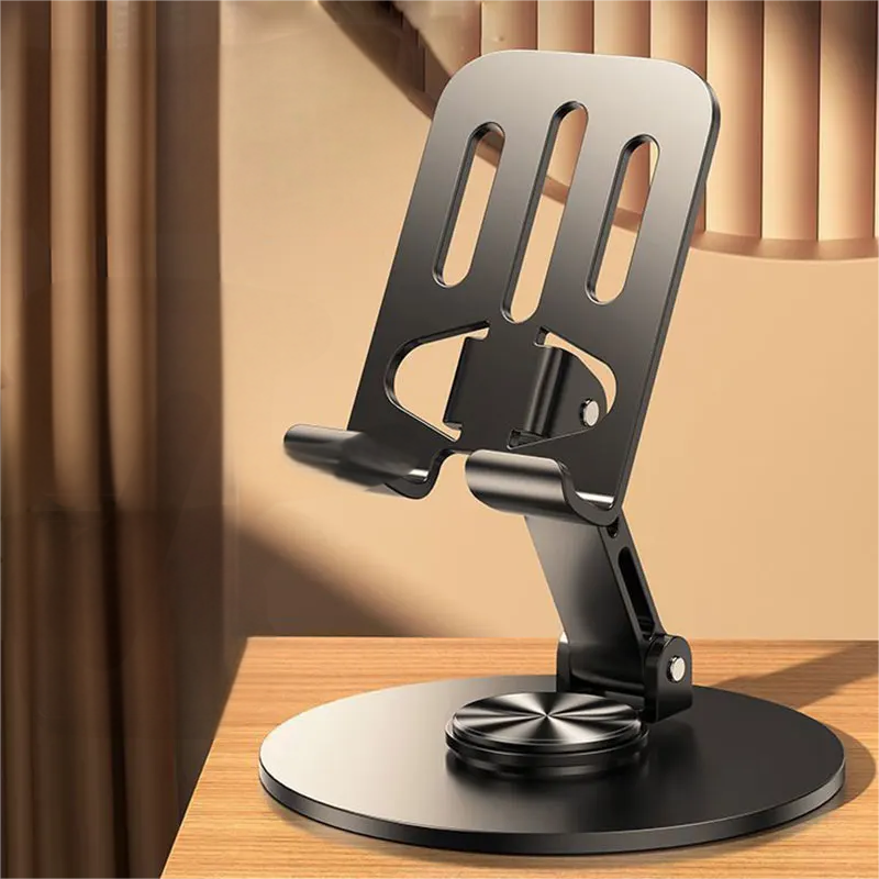 This All-Metal Aluminum 360° Rotation Mobile Phone Holder is designed with a premium double-shaft folding structure, allowing full adjustability and reliable stability. Crafted from high-quality aluminum alloy, the stand is built to last, offering superior durability and anti-fall protection. The sleek metallic finish and non-slip pads make it ideal for desks, countertops, or any flat surface. Whether for hands-free video calls, watching movies, or reading, this universal bracket provides an optimal viewing angle with smooth 360° rotation.