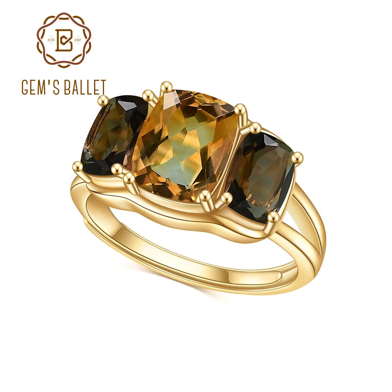 925 Sterling Silver Natural Smoky Quartz Citrine Three-Stone Engagement Ring Gift For Her Trending Gold Jewelry