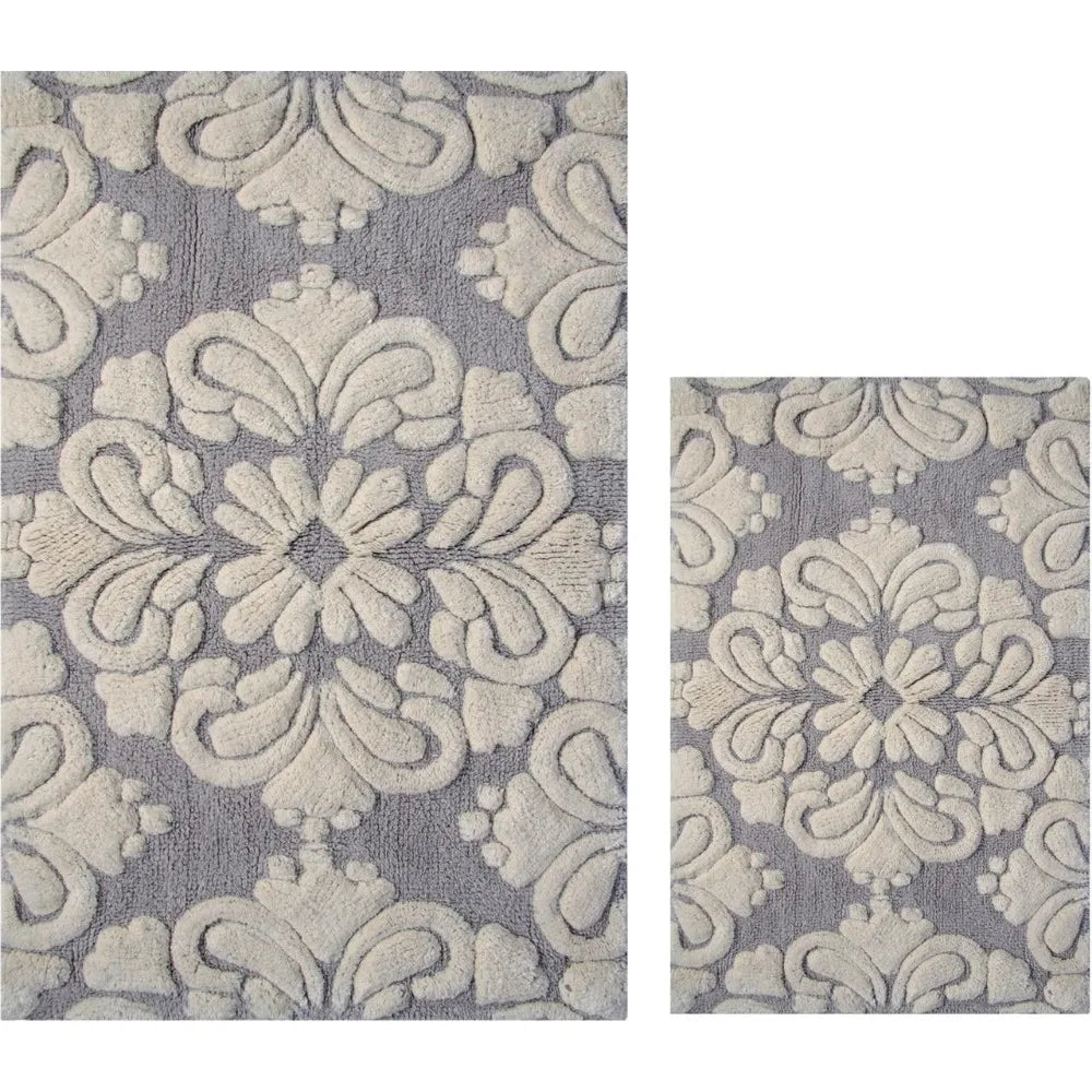 Add timeless style and plush comfort to your bathroom with the Better Trends Medallion 2-Piece Bath Rug Set in Grey/Natural. This elegant set includes two rugs measuring 24" x 40" and 17" x 24", perfectly sized for placement by the bathtub, shower, sink, or toilet.