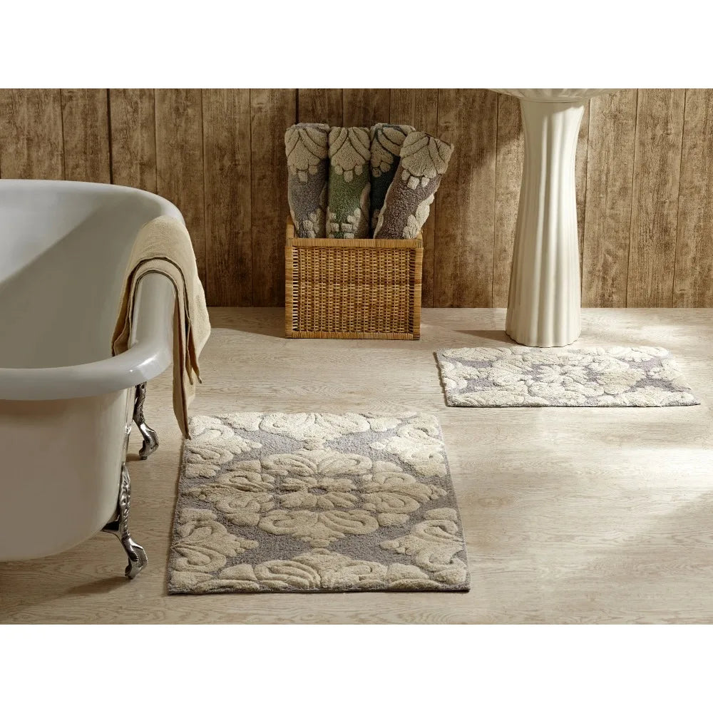 Crafted with a textured medallion design, these rugs bring a touch of sophistication to your bathroom décor while providing a soft, absorbent surface for your feet. The neutral grey and natural tones easily blend with both classic and modern interiors, while the durable construction ensures long-lasting use.